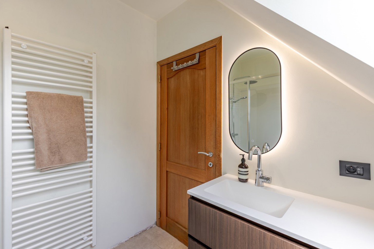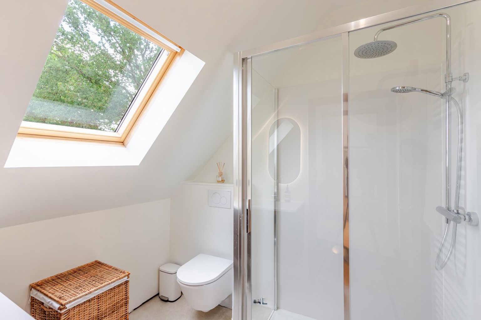 Op de verdieping vinden we twee ruime slaapkamers en een badkamer met inloopdouche. Er is ook nog een extra berging met aansluiting voorwasmachine en droogkast, een zolder en een zeer ruime tuinberging!