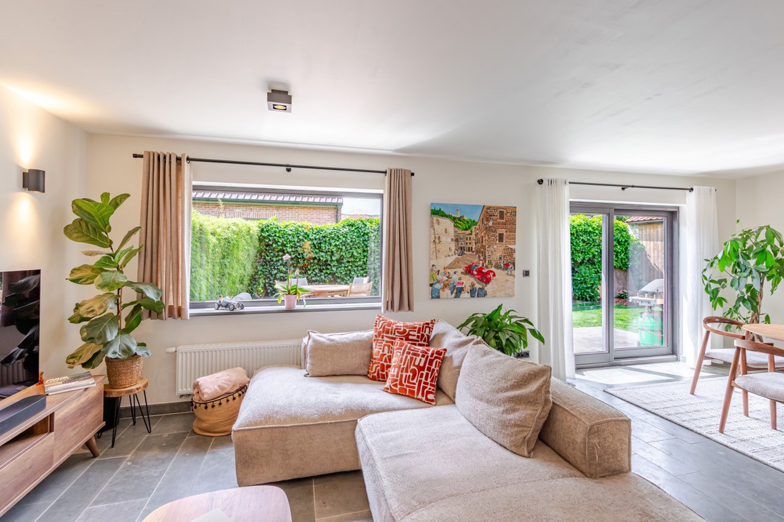 De woning heeft een lichtrijke woonkamer met een open keuken en toegang tot een zalig zonnige tuin met het ideale terras om te genieten van de avondzon.
