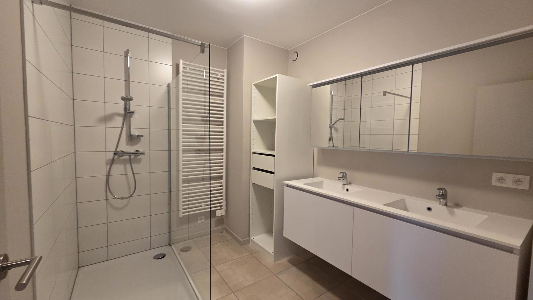 Het appartement geniet van een ruime inkomhal en een heel ruime en lichtrijke woonkamer met open keuken (volledig geïnstalleerd). Aansluitend aan de woonkamer hebben we een groot en zonnig terras. Er is een badkamer met inloopdouche en er zijn twee slaapkamers, waarvan één met dressing. Extra troef is de ondergrondse staanplaats met bijhorende berging.