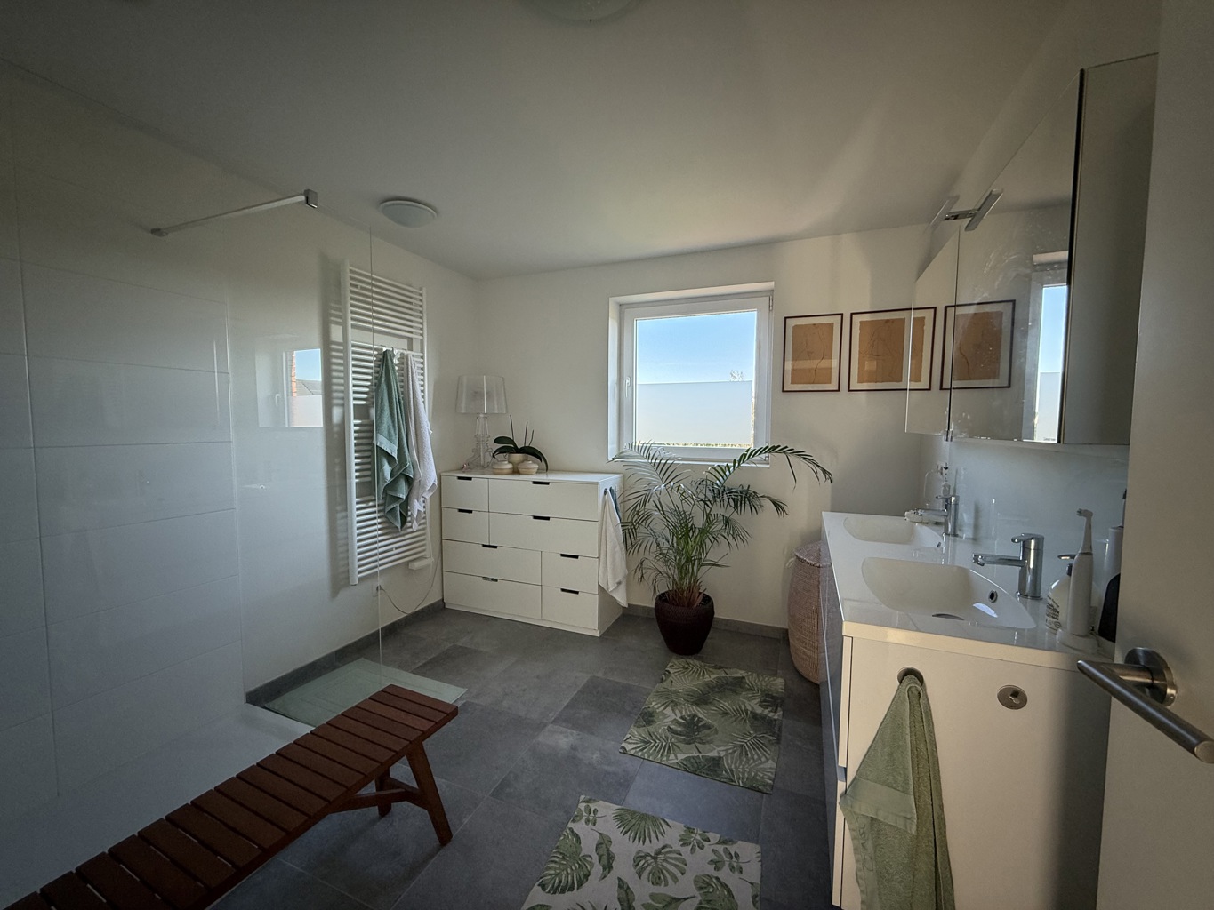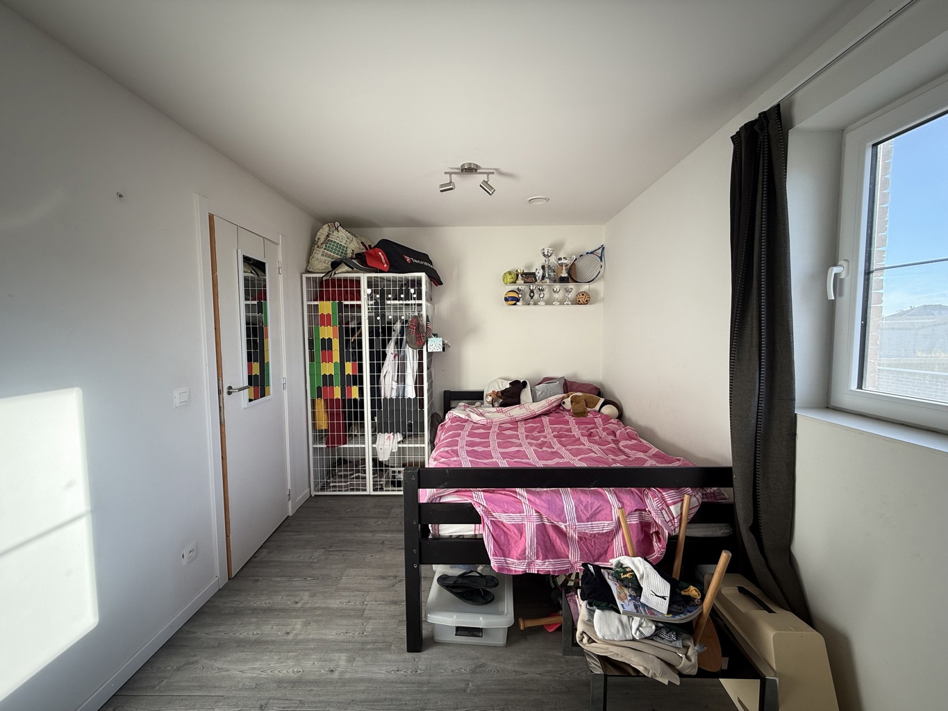 Op de eerste verdieping bevinden zich drie volwaardige slaapkamers en een moderne badkamer met inloopdouche en dubbele wastafel. Verder is er een afzonderlijk toilet én werd op de nachthal een open bureauruimte ingericht — ideaal voor wie regelmatig thuiswerkt of een rustige studieplek nodig heeft. Daarnaast is er ook een technische-/zolderruimte aanwezig.