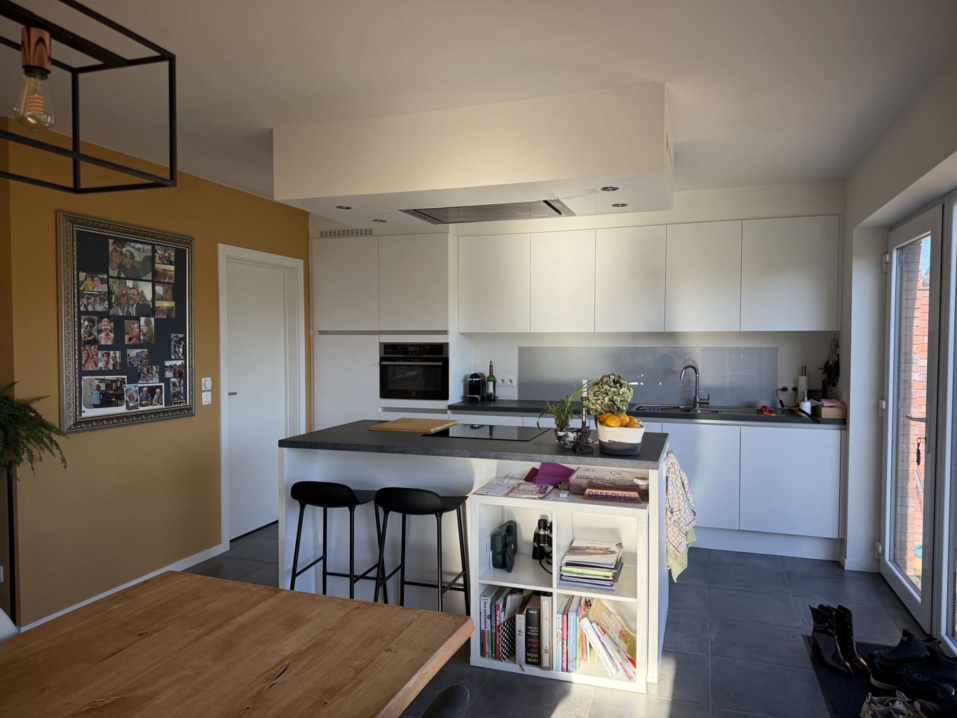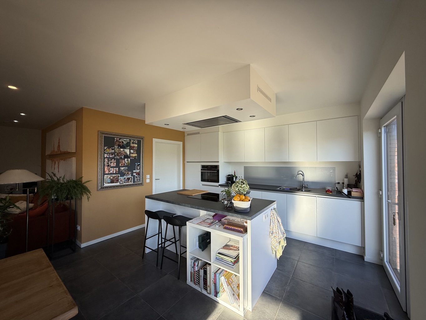 Bij het binnenkomen word je verwelkomd in een ruime inkomhal met apart gastentoilet. De gezellige leefruimte baadt in natuurlijk licht en dankzij de prachtige glazen uitbouw geniet je het hele jaar door van een heerlijk uitzicht op de tuin — de perfecte plek om te ontspannen met een boek of een kop koffie. De aangename open keuken is uitgerust met alle nodige toestellen en sluit naadloos aan op een praktische berging (met aansluiting voor wasmachine) en een inpandige garage.