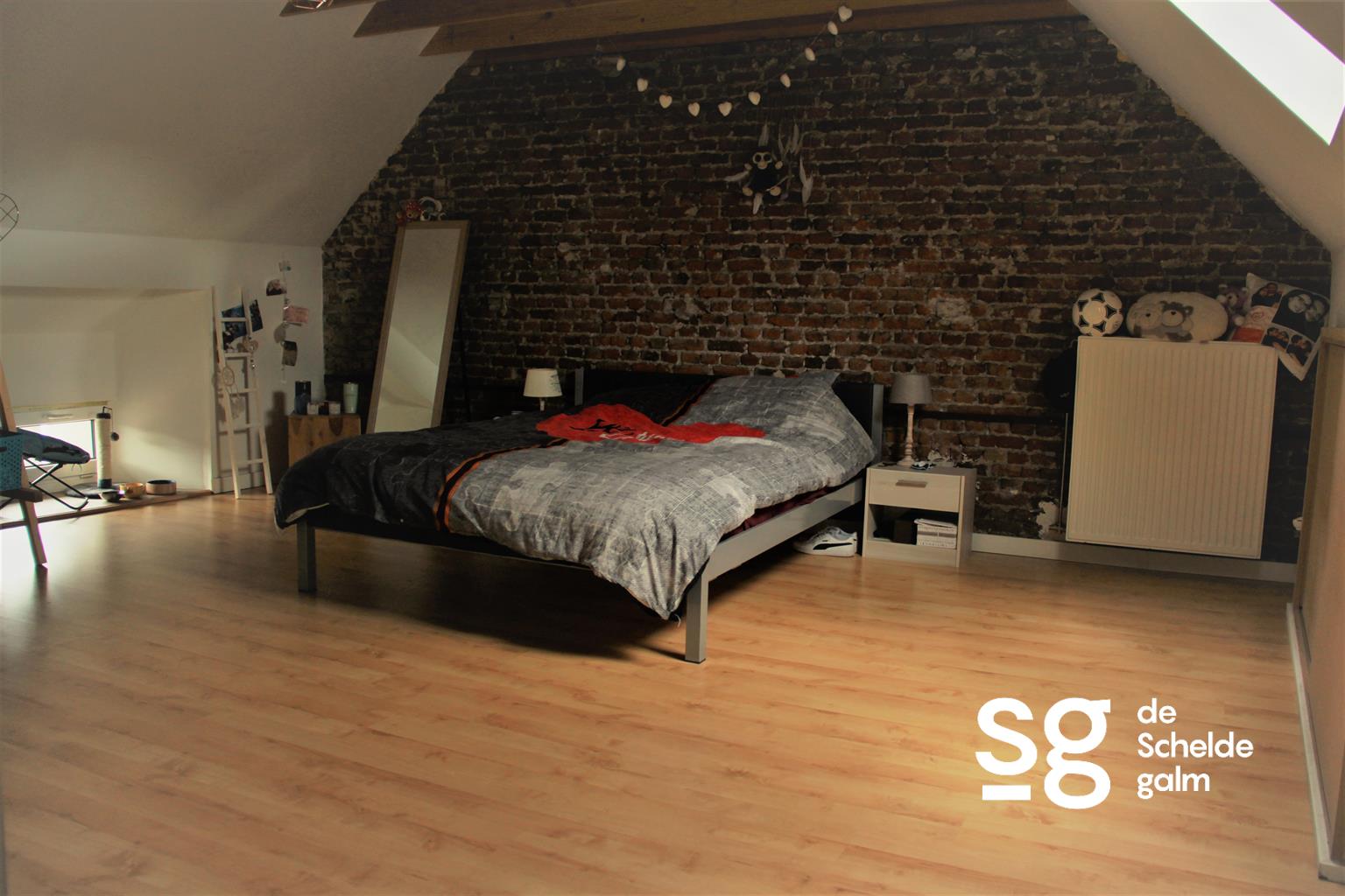 De indeling is als volgt: bij binnenkomst een inkomhal met toegang tot de ruime en lichtrijke woonkamer met open keuken (volledig geïnstalleerd). Op het gelijkvloers vinden we nog een kleine kelderberging en een eerste slaapkamer/bureau. Op de eerste verdieping vinden we de zeer ruime masterbedroom met aansluitend de badkamer (voorzien van ligbad met douche). Achteraan de woning vinden we een verrassend ruime tuin met tuinberging.