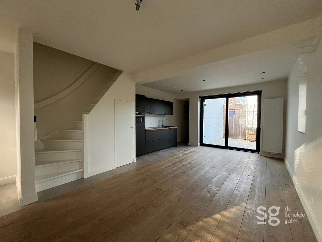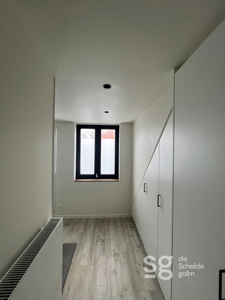 Deze charmante woning biedt een ideale mix van modern comfort en een gezellige uitstraling. Dankzij de zonnepanelen geniet je van energiezuinig wonen, terwijl de geïntegreerde domotica zorgt voor extra gemak en slimme bediening van je woning. De warme afwerking met massief parket geeft het interieur een luxueuze uitstraling. De woning beschikt over een lichte leefruimte, een volledig ingerichte keuken, één ruime slaapkamer op het 1e verdiep en een moderne badkamer met douche. Overal zijn op maat gemaakte kasten voorzien. Praktisch gemak staat centraal met een bergruimte binnen de woning én een extra grote berging die direct aansluit op het gezellige terras, ideaal voor opslag. Buiten vind je een rustig gelegen terras waar je heerlijk kunt ontspannen, terwijl je aan de voorzijde van de woning beschikt over een autostaanplaats. De ligging is perfect: in een rustige buurt, maar toch op wandelafstand van het dorpscentrum met alle nodige voorzieningen binnen handbereik. Kortom, deze woning biedt alles wat je nodig hebt voor comfortabel en modern wonen in een aangename omgeving. Interesse? Neem vandaag nog contact met ons op voor meer informatie of een bezichtiging! Bel met Peter op +32 492 918 911 of mail naar peter@descheldegalm.be.