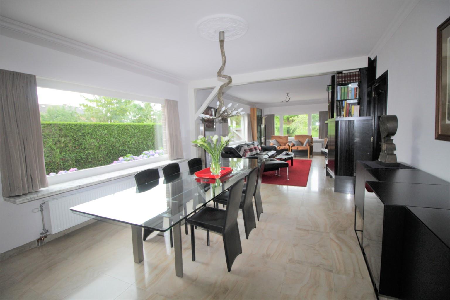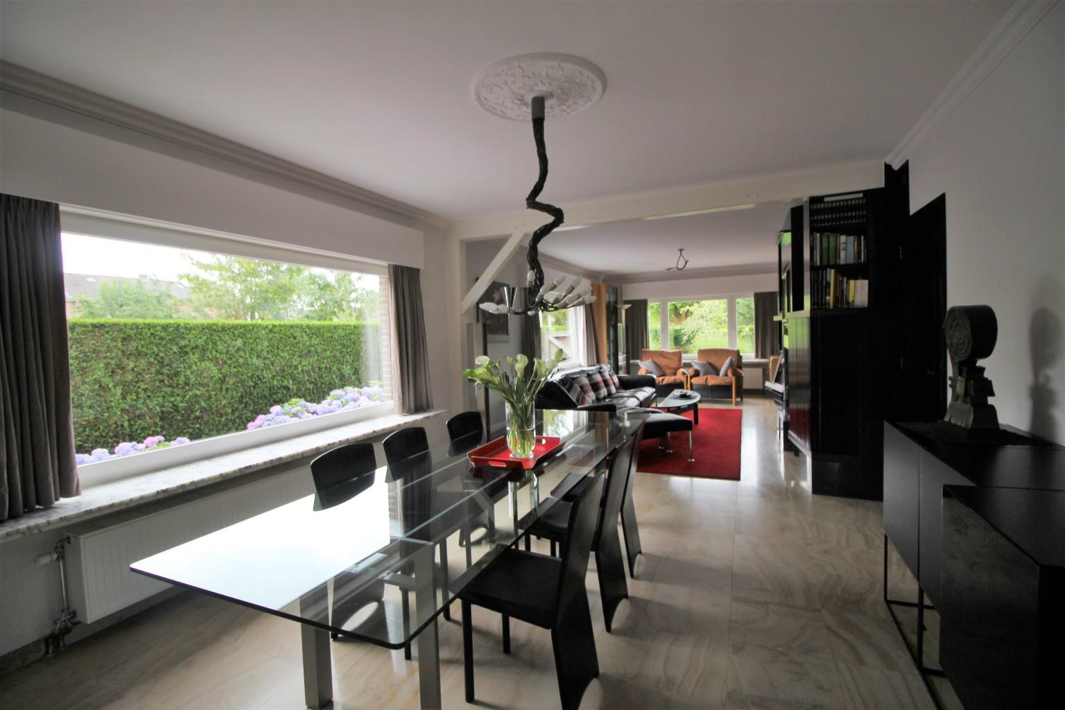 Deze woning is heel centraal gelegen in het centrum van De Pinte op wandelafstand van diverse winkels, scholen en het station van De Pinte. Deze ruime woning beschikt over 163m² bewoonbare oppervlakte en bestaat op het gelijkvloers over een inkom met apart toilet; een gezellige, lichtrijke leefruimte met cassette haard; een moderne volledig geïnstalleerde keuken ( inclusief vaatwas, inductie kookplaat, Miele koffiemachine, Miele stoomoven, combi micro hete lucht, hete lucht oven en frigo) en bergplaats. Op het eerste verdiep beschikt de woning over 3 slaapkamers, een 4de hobbykamer/bureau en een badkamer met inloopdouche. De zongerichte tuin met vijver is een ware troef. Verder beschikt deze woning nog over een droge kelder en praktische zolder.