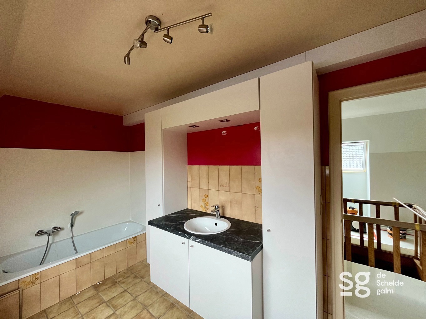 Bij het betreden van de woning komt u binnen in een verzorgde inkomhal. Van hieruit heeft u toegang tot het gastentoilet, een praktische berging onder de trap en de inpandige garage. De woning is gelegen op een mooi perceel met een voortuin en een ruime oprit, wat zorgt voor voldoende parkeergelegenheid en een verzorgd geheel bij aankomst. Verder op het gelijkvloers bevindt zich een lichtrijke leefruimte waar de vernieuwde keuken overgaat in de gezellige woonkamer. Aansluitend vindt u een handige wasplaats. Daarnaast is er ook een slaapkamer op het gelijkvloers, wat extra comfort en flexibiliteit biedt. Op de eerste verdieping zijn er drie ruime slaapkamers en een extra kamer die perfect kan ingericht worden als dressing of multifunctionele ruimte. De badkamer wordt nog vernieuwd, wat bijdraagt aan het hedendaagse comfort van de woning. Buiten geniet u van een grote, aangename tuin met een ruim tuinhuis, ideaal voor extra opslag of als hobbyruimte. De tuin wordt verder aangelegd met een nieuw gazon, zodat u volop kunt genieten van deze groene omgeving. De woning wordt nog verder opgefrist: zo wordt ze nog volledig geschilderd en worden de badkamer en keuken nog verder afgewerkt. Dankzij de 24 zonnepanelen en het gunstige EPC-label B is dit een energiezuinige woning. Kortom, een ideale thuis voor wie op zoek is naar ruimte, comfort en een instapklare woning met een mooie en functionele afwerking. Voor informatie of een bezoek, neem gerust contact op via peter@descheldegalm.be.