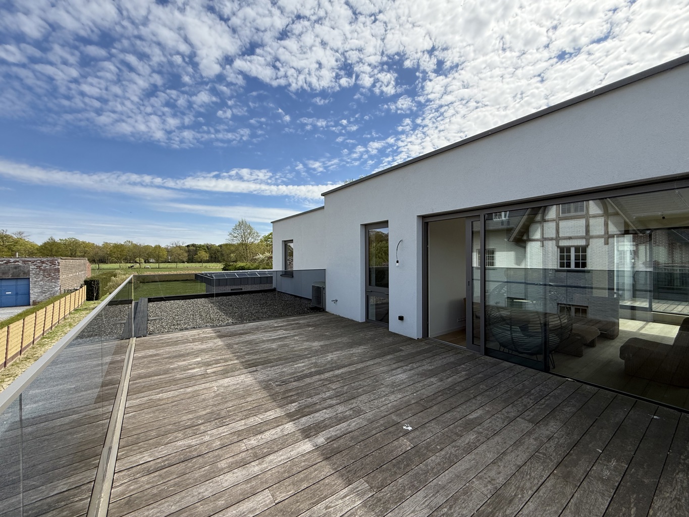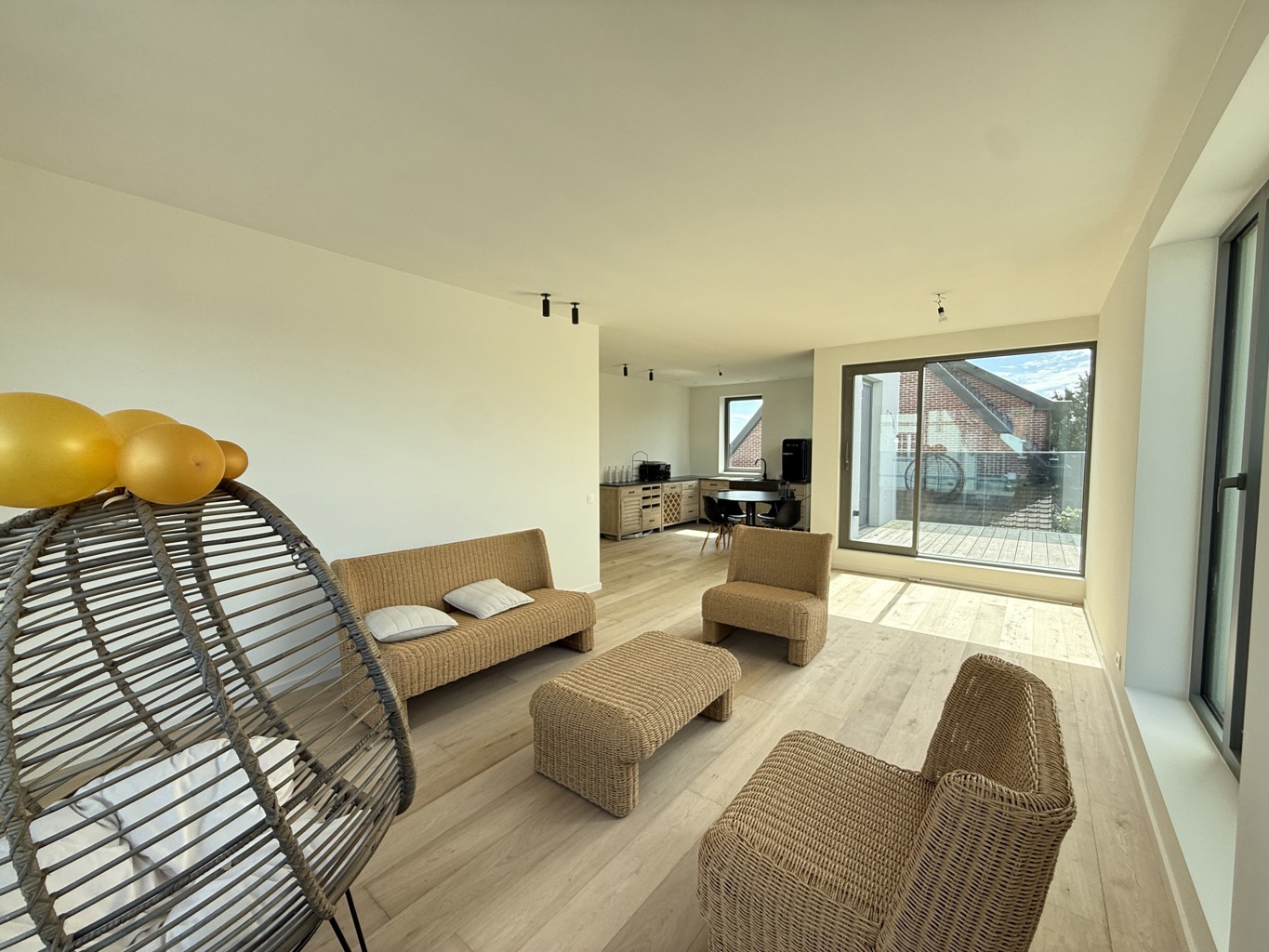 Via de inkom met trap komt u in een uitzonderlijk lichtrijke leefruimte met open keuken. De grote raampartijen zorgen voor een overvloed aan natuurlijk licht en creëren een heerlijk open en ruimtelijk gevoel. Aansluitend beschikt het appartement over twee terrassen: een gezellig terras waar u ’s ochtends in alle rust kan ontbijten en een tweede, ruim terras met een prachtig, weids uitzicht – ideaal om te ontspannen na een lange dag.