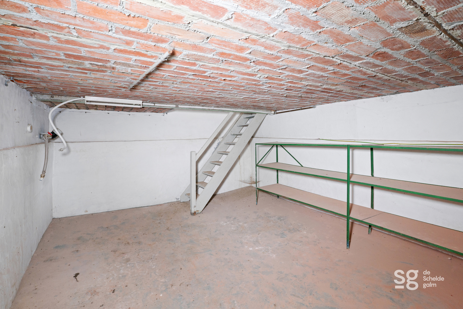 Het gelijkvloers verwelkomt je met een ruime inkomhal, die toegang biedt tot een eerste kamer en de lichtrijke leefruimte met aparte bureauhoek en halfopen keuken. Verder vind je op dit niveau nog twee praktische bergingen en een droge kelder (ca. 12 m²).