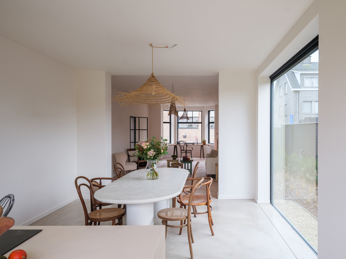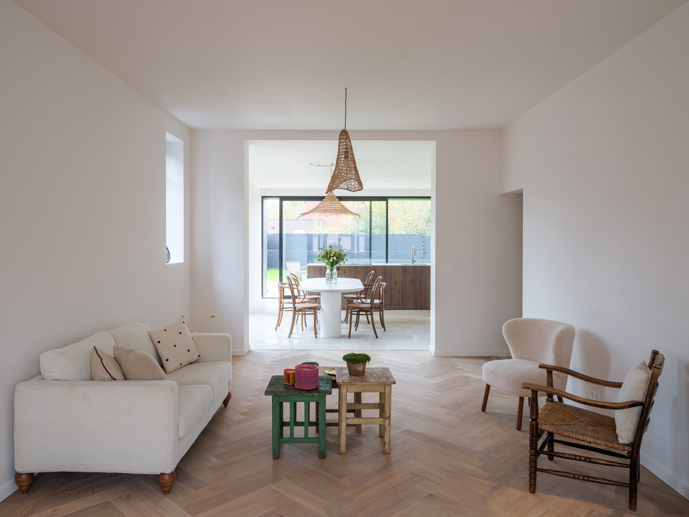 Ontdek dit prachtig renovatieproject op een uiterst centrale locatie in het hart van Zwijnaarde, op een boogscheut van Gent. Deze karaktervolle koppelwoning werd met oog voor detail en respect voor authentieke elementen volledig gerenoveerd, met een perfecte balans tussen hedendaags comfort en tijdloze charme.