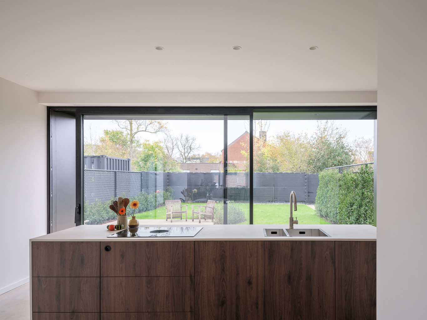 Bij het binnenkomen tref je de inkomhal die toegang biedt tot de ruime en gezellige leefruimte met aansluitend een open, volledig ingerichte keuken voorzien van alle moderne toestellen. Naast de keuken bevindt zich een praktische berging. Tevens aanwezig op het gelijkvloers is een apart toilet en een kelderruimte – ideaal voor extra opslag.