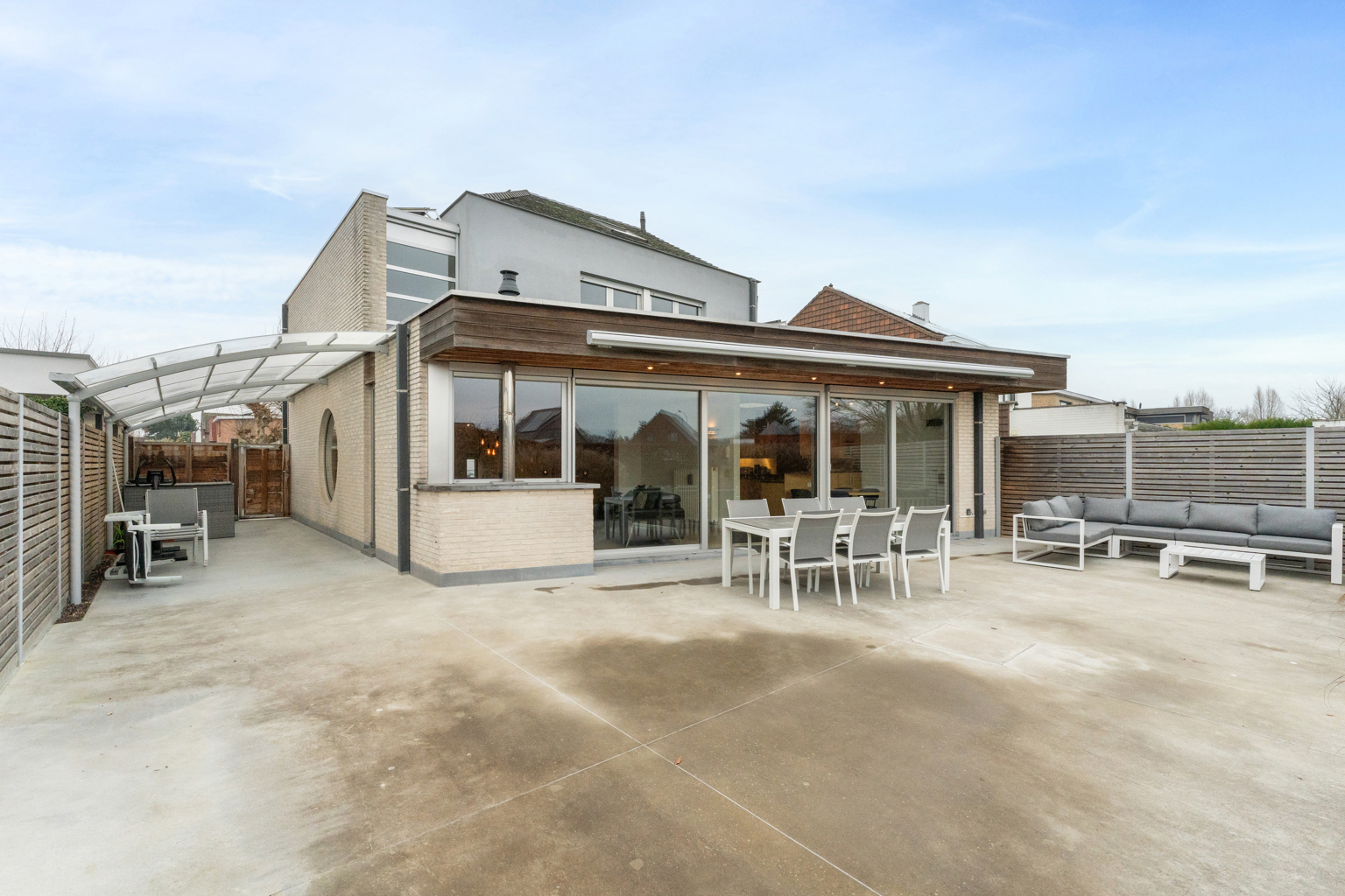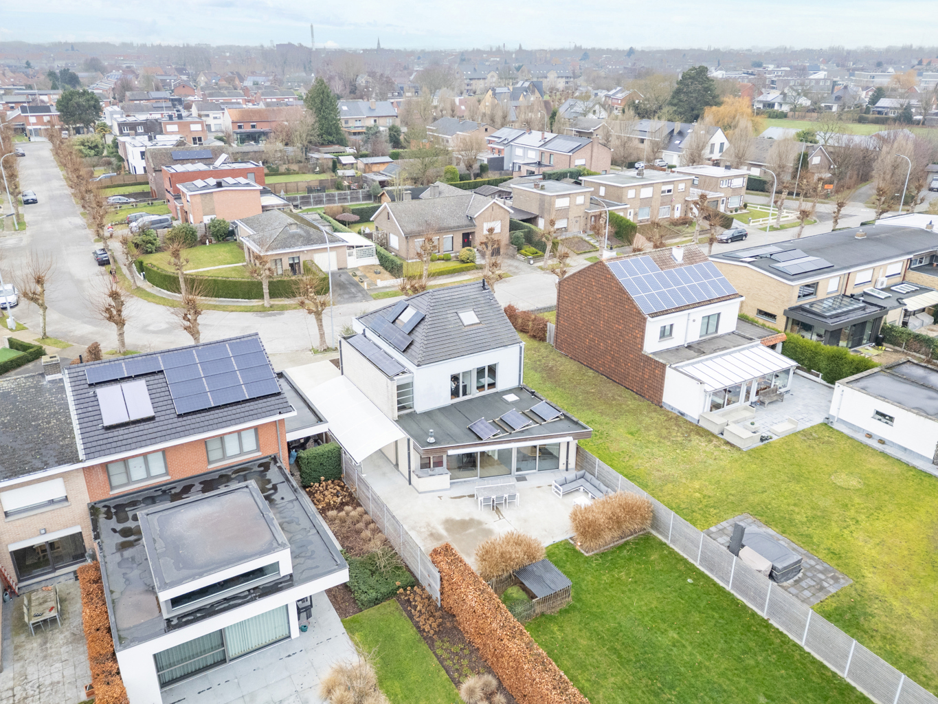 Op de eerste verdieping zijn er drie volwaardige slaapkamers, een badkamer en een aparte dressingkamer. Daarnaast is er ook een zolder aanwezig, perfect als extra opslagruimte. Buiten geniet je van een mooi aangelegde, goed georiënteerde tuin met terras, waar het heerlijk vertoeven is. Naast de woning is er bovendien een overdekt terras, ideaal om ook bij minder weer van het buitenleven te genieten. De woning is uitgerust met zonnepanelen, zonnescreens en buitenzonnewering, wat bijdraagt aan het wooncomfort het hele jaar door.