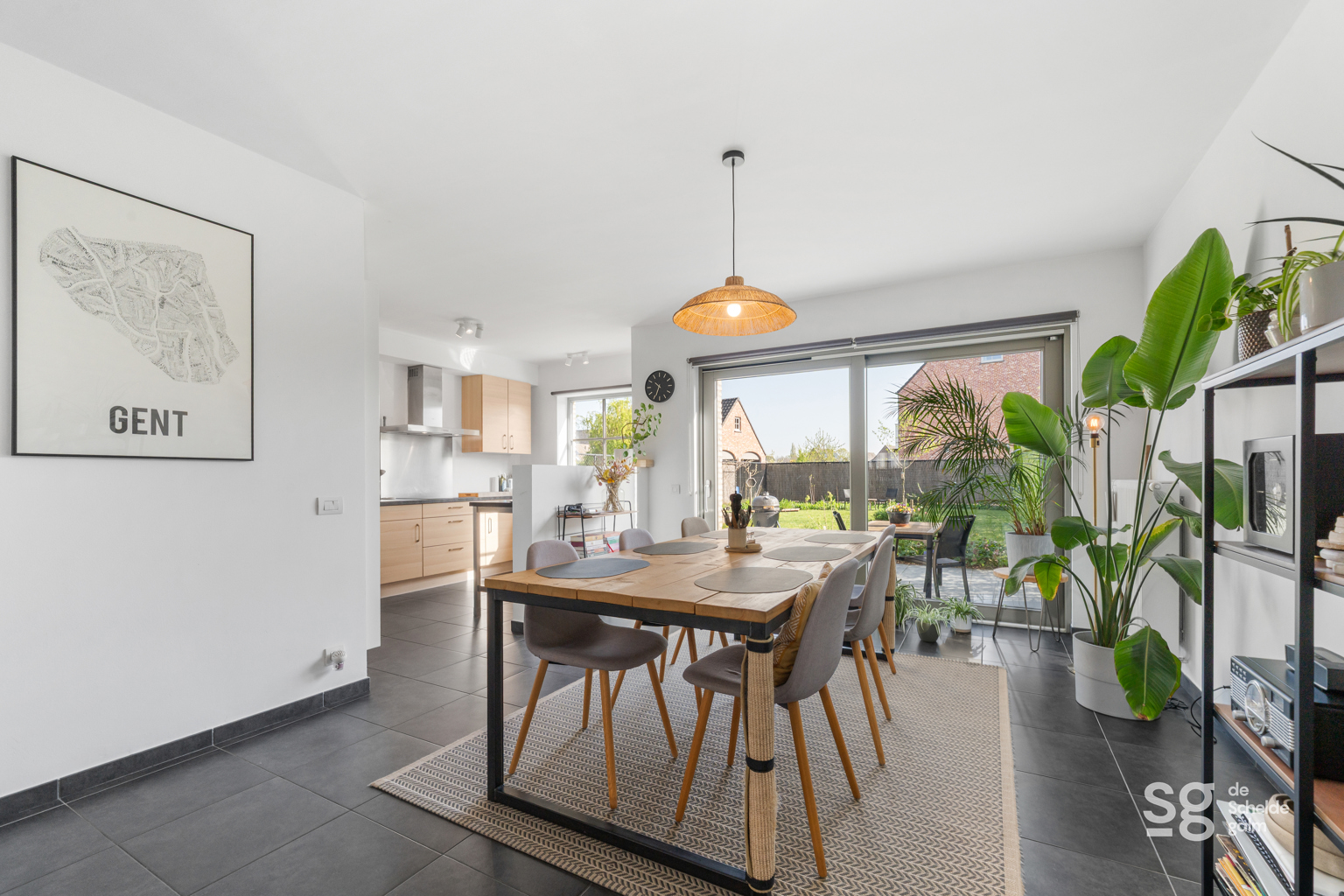 Bij het betreden van de woning wordt u verwelkomd in een inkomhal met gastentoilet. Van hieruit komt u in de ruime en lichtrijke leefruimte, waar grote raampartijen zorgen voor een aangename, open sfeer en een mooi zicht op de tuin. Aansluitend bevindt zich de praktische keuken, die alle comfort biedt voor het dagelijkse gezinsleven.